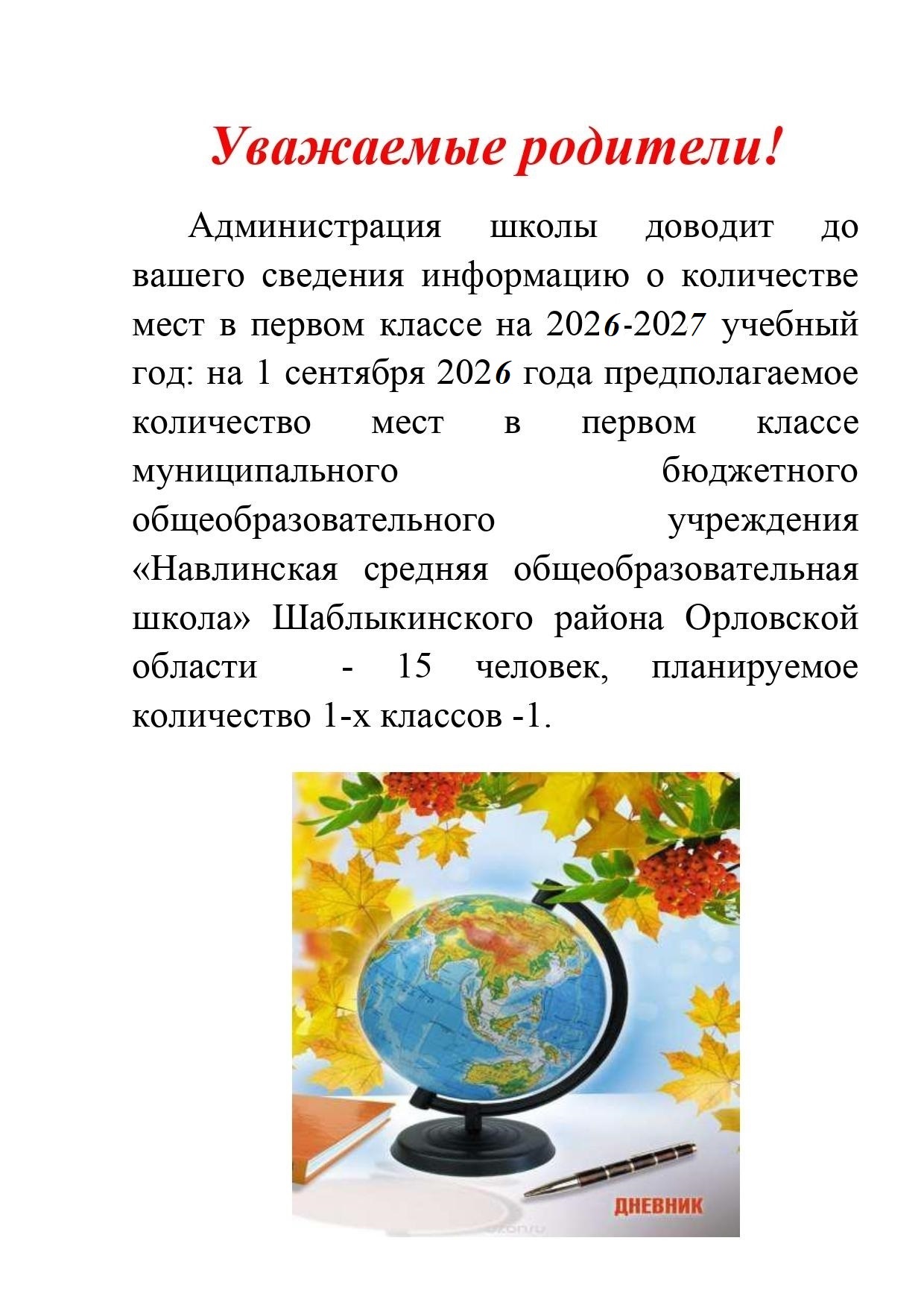Сведения о наличии свободных мест